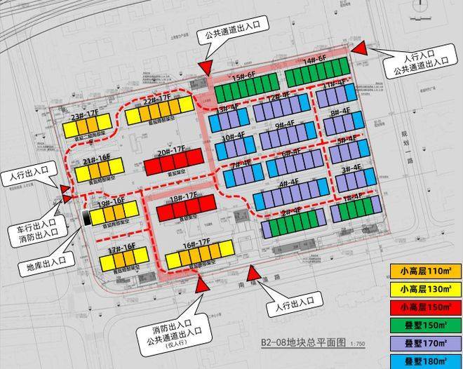 项目主推高层+叠墅产品,满系五恒科技精装住宅,高层主力户型建面约112-146㎡3-4房,叠墅户型建面约150-190㎡。