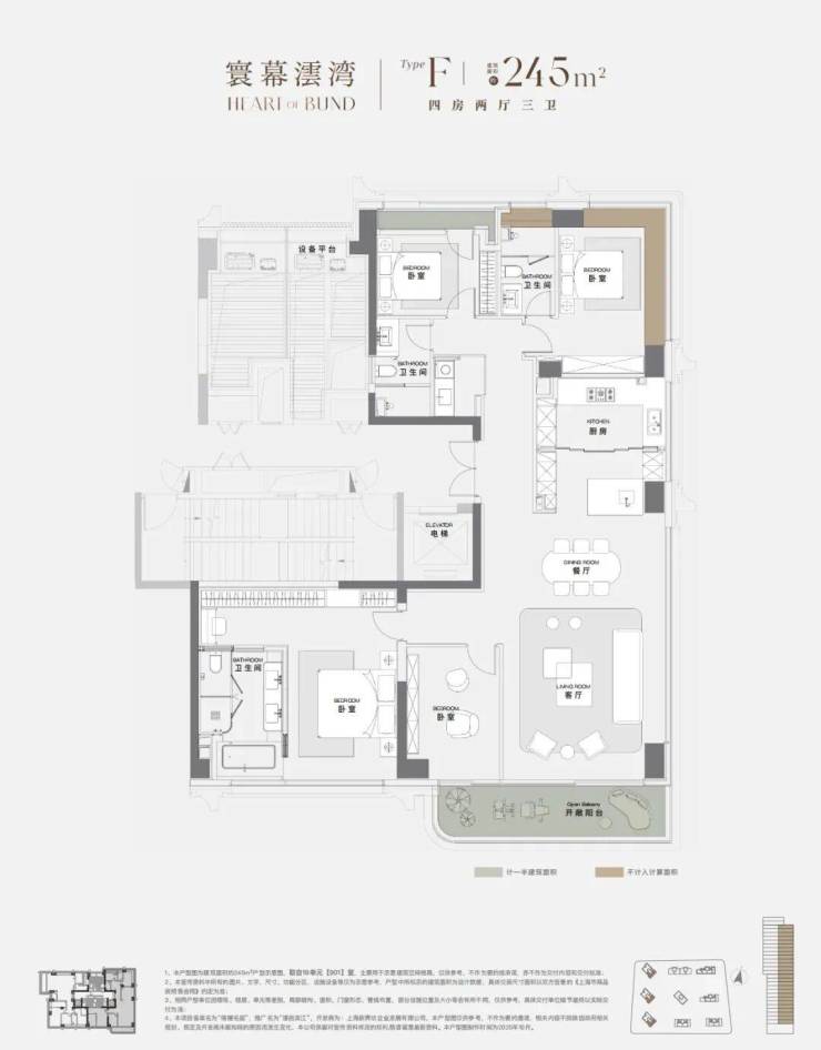 245㎡江湾客厅:拥有全上海唯一的约60㎡ S湾私人会客厅,仅由5根外置立柱支撑起270°超级无界平层,X空间柔性定制系统更支持3房与4房格局的自由切换。