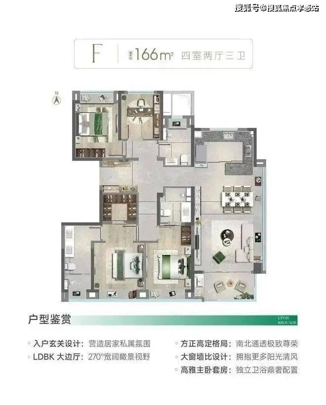 建面约166㎡四房户型图▼