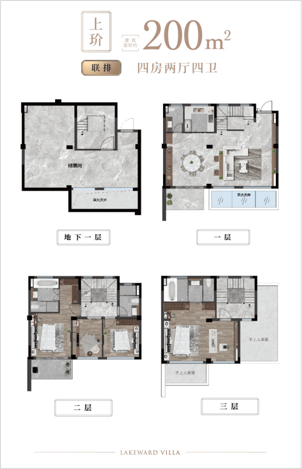 考究社区入口、舒适大堂入口、奢雅会所入口协同构建地上归家体系;艺术地下大堂营造简约轻奢的地下归家体系。