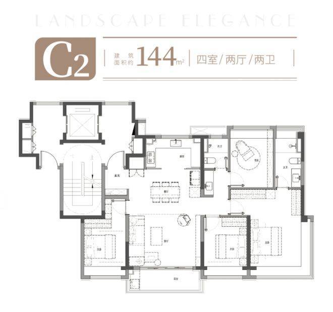 建面约144㎡洋房,更是改善首选,整体得房率,约79%: