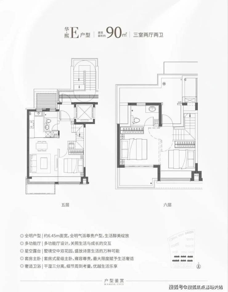 特别是这个 E户型,建面仅约90㎡,对于想住叠加但预算有限的购房者来说,面宽约6.45米,上下动静分离带,是个不错的选择!