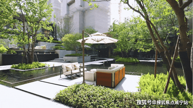 在下沉式景观庭院两侧,是不同的邻里空间。一侧是邻里中心,涵盖恒温泳池以及宽阔的健身房空间。当业主锻炼时,不被空间局限。透过落地窗,可以一边挥洒汗水,一边尽情欣赏庭院中的美景。