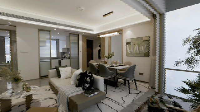 2、约5.7米宽厅,功能分区明确,生活动线井然有序。格局上实现了真正的全明空间与南北通透,生活空间张弛有度。