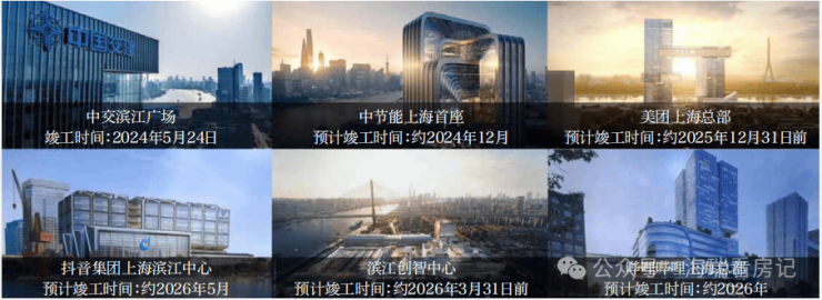 如在建的美团上海科技中心、哔哩哔哩新世代产业园、抖音集团上海滨江中心、中交集团上海总部、中节能上海首座项目、杨浦滨江创智中心等重大项目都将于2026年底左右陆续竣工并投用。