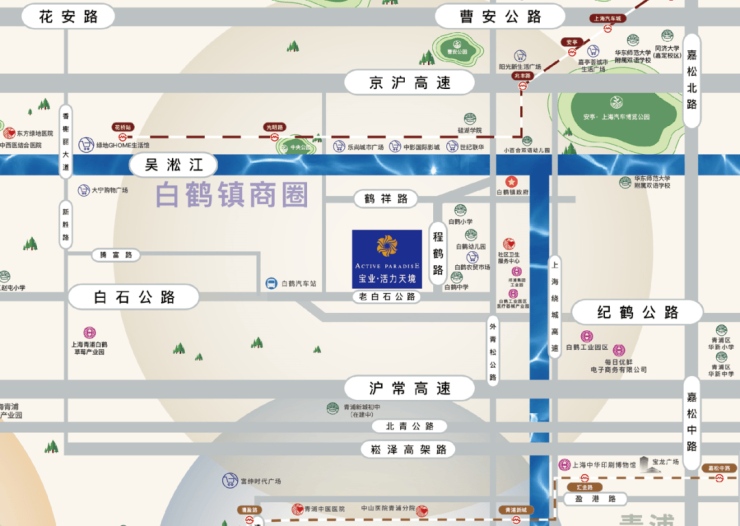 市域铁路:未来市域铁路嘉青松金线,将贯穿嘉定、青浦、松江和金山,届时白鹤将与青浦新城直接连通,并换乘轨交17号线和沪苏嘉城际线。 宝业·活力天境官方售楼处电话:400-9966-940☎️☎️☑️☑️