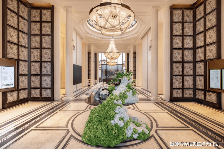 7、海上·清和玺的空间不是简单的功能间,而是化身艺术空间。在酒店式归家环岛中心,海上 ·清和玺原创了艺术装置——海派漩心。首创经典山茶花图腾设计,其灵感源于海派建筑中的山茶花图腾,其采用了 300余枚鳞片定制,超过2000次折叠锻造 ,最终才营造出眼前这般美轮美奂的冰裂纹视觉图样。