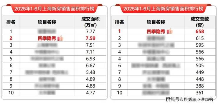 从2025年1-6月上海销售情况来看,四季隐秀成交套数名列第一,成交面积位列第二。