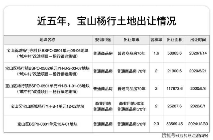 首先,回顾杨行近五年的土地出让情况: