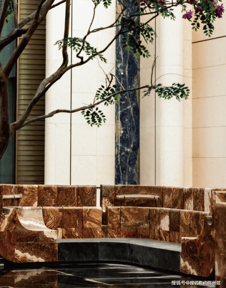比如,整个下沉式庭院材料选用 土耳其进口老虎玉,由匠人耗时60天手工打磨定制, 可见海上·清和玺对业主归家仪式感设计的用心与苛求。