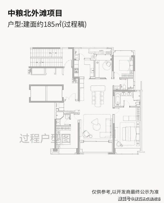 据悉,中粮北外滩壹号首期 将推约185-228㎡4-5房,共计90套房源,均价143868元/㎡,目前售楼处&样板房已开放,将于近期取证认购!