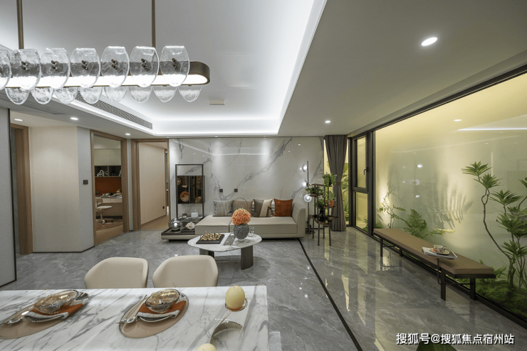 聆星客厅前方种植了松界王者——日本黑松,约4000万+的顶豪融创外滩壹号院的社区内,也有一颗同款;