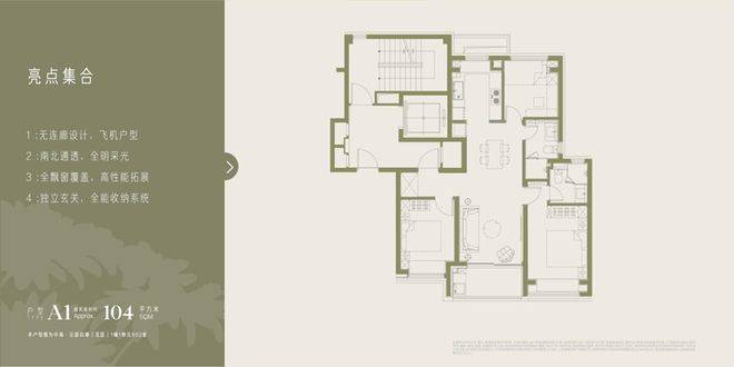 作为滨江核心商务区的稀缺三房产品,104㎡户型以极致的空间利用率,满足三口之家的全周期居住需求。纯板楼无连廊设计,规避了传统户型的采光死角与隐私泄露问题,实现全屋南北通透。独立玄关衔接专属储藏空间,打造高效收纳体系,让居家空间告别杂乱。