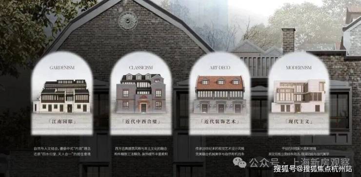 贯彻“中意西景、中正西融”景观理念,以中式花园隐居哲学核心,传承中式里弄记忆、融合西式花园情调。提取场地四种建筑和场域风格特征,营造中西风貌交叠的别墅花园景观,演绎当代海派风情里弄人居。