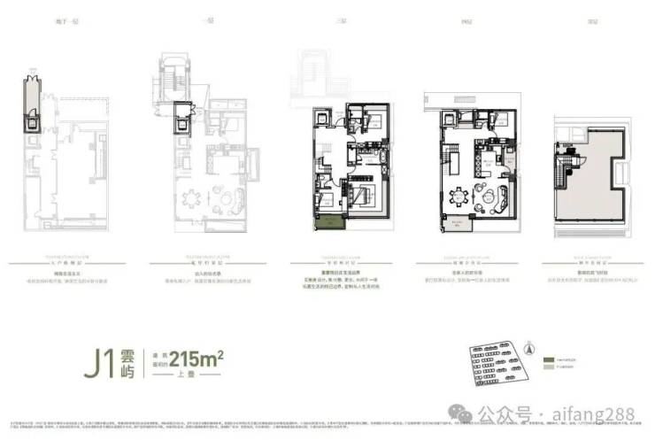 建面约215㎡上叠 : 屋面+庭院+地下室+ 露台+阳台的整体附赠 空 间约110㎡;