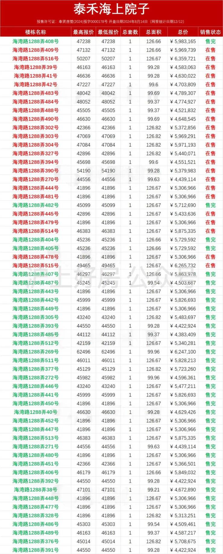 99平使用面积330平左右,产证面积165平,套内面积270平左右,花园50-60平左右,四套房全朝南;总价约450万-565万