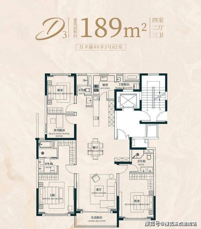 建面约183㎡4房2厅2卫户型:昌平云岸售楼处电话:400-9966-940☎️☎️☑️☑️