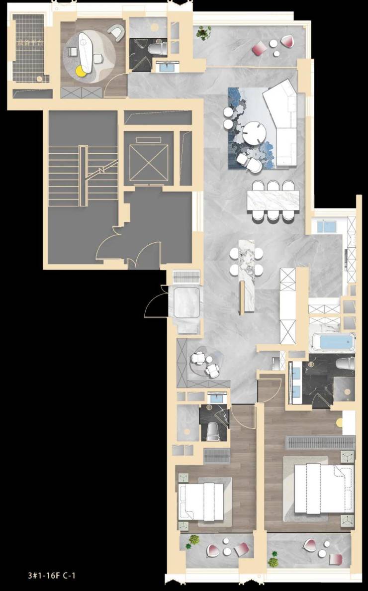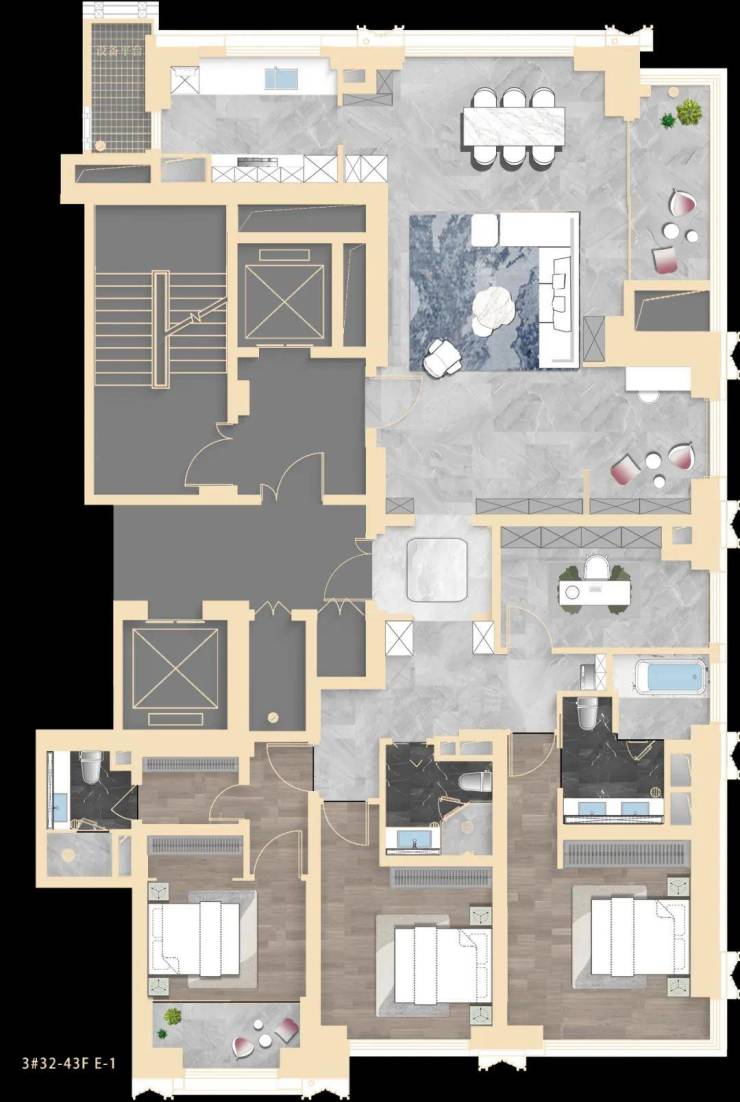 建面约193、237㎡为类一梯一户设计,拥独立门厅;建面约303㎡ 标配2梯1户、私享梯厅,纯粹的大平层圈层!