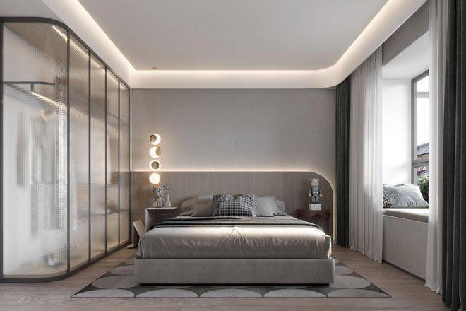 双套房设计,主卧带卫生间+衣帽间,次卧带衣帽间+飘窗,让两代家庭都能拥有自己的私密空间。