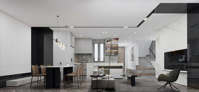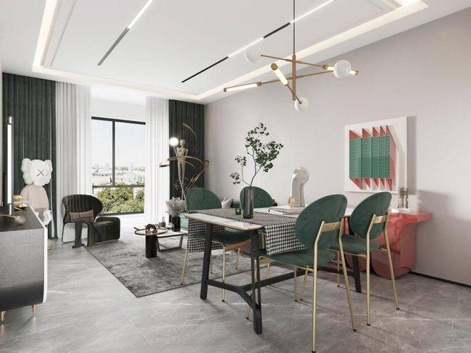 独立的入户玄关,出入皆有生活的仪式感,更方便做细致的收纳分区;客厅、餐厅相互独立,客厅南连宽景阳台,餐厅北连飘窗,让空间得以延展的同时,也让阳台的功能多样化;厨房就近连接餐厅,动线清晰,客餐厅通透明亮。