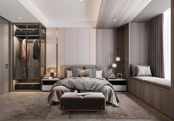 主卧套房设计,带独立卫生间+衣帽间+飘窗,改善户型标配,专属于主人的私密空间;