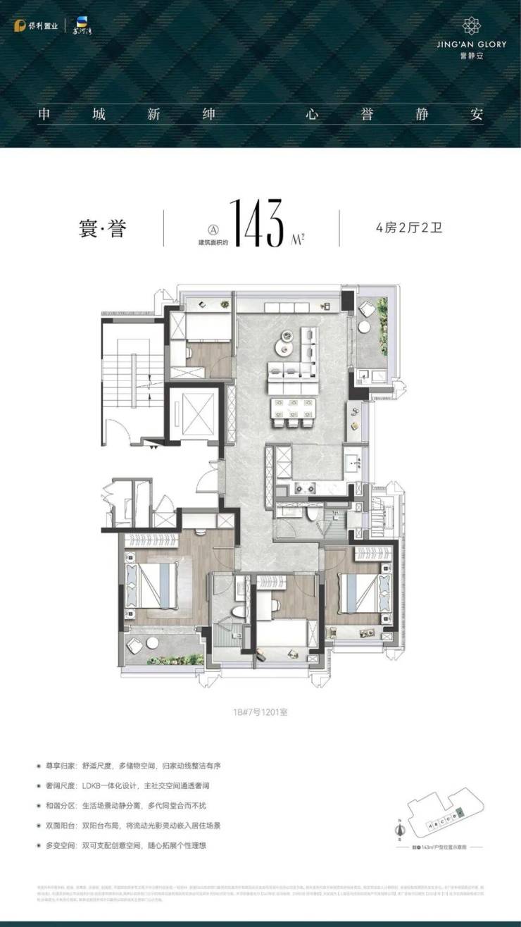 誉静安建面约143㎡户型,是2000万级买到内环内4房的仅有机会,一步到位终极改善,还在各个层面实现居住品质的跃迁,这样的房子买起来能不舒心吗?