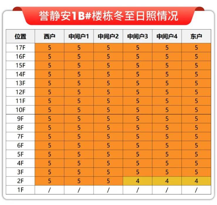 经过建筑设计师测算,项目首开的1-B楼南面几无遮挡,春夏日照拉满,即使是冬至时分也几乎所有楼层所有房源都有5个小时的日照(内环内大部分小区冬至日照时长2-3个小时),真正的城心“阳光房”。
