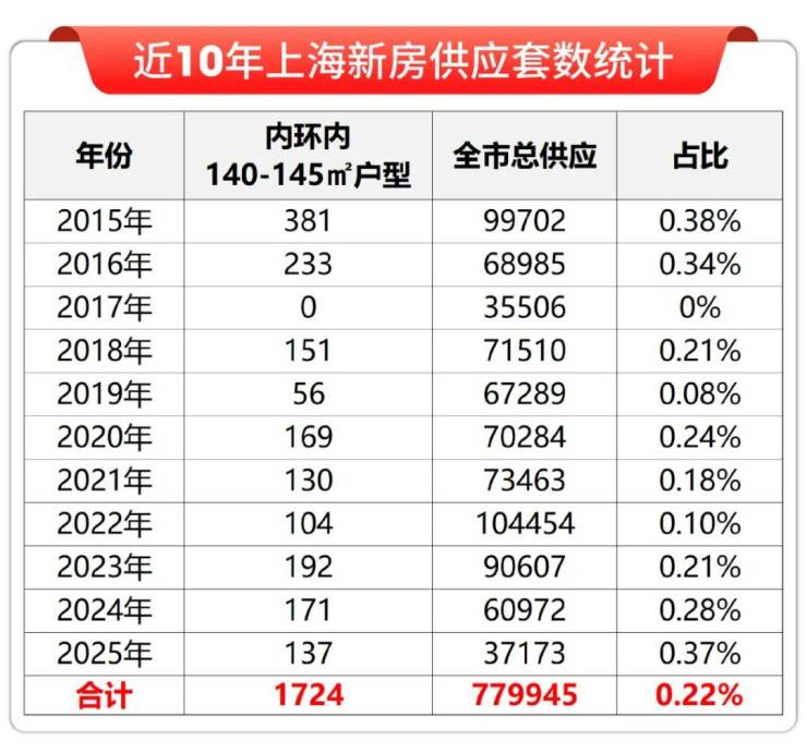 据网上房地产数据显示,近10年整个内环内每年入市的140㎡+的4房户型基本都是百余来套,占比总池子约千分之二,稀缺性可见一斑!