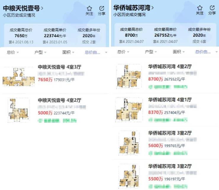 区域内多个项目单套成交价格突破半亿,如华侨城苏河湾、中粮天悦壹号、傲舍(10月底网签成交1套353平大户型新房,总价5138万)等,高端属性已然成型。