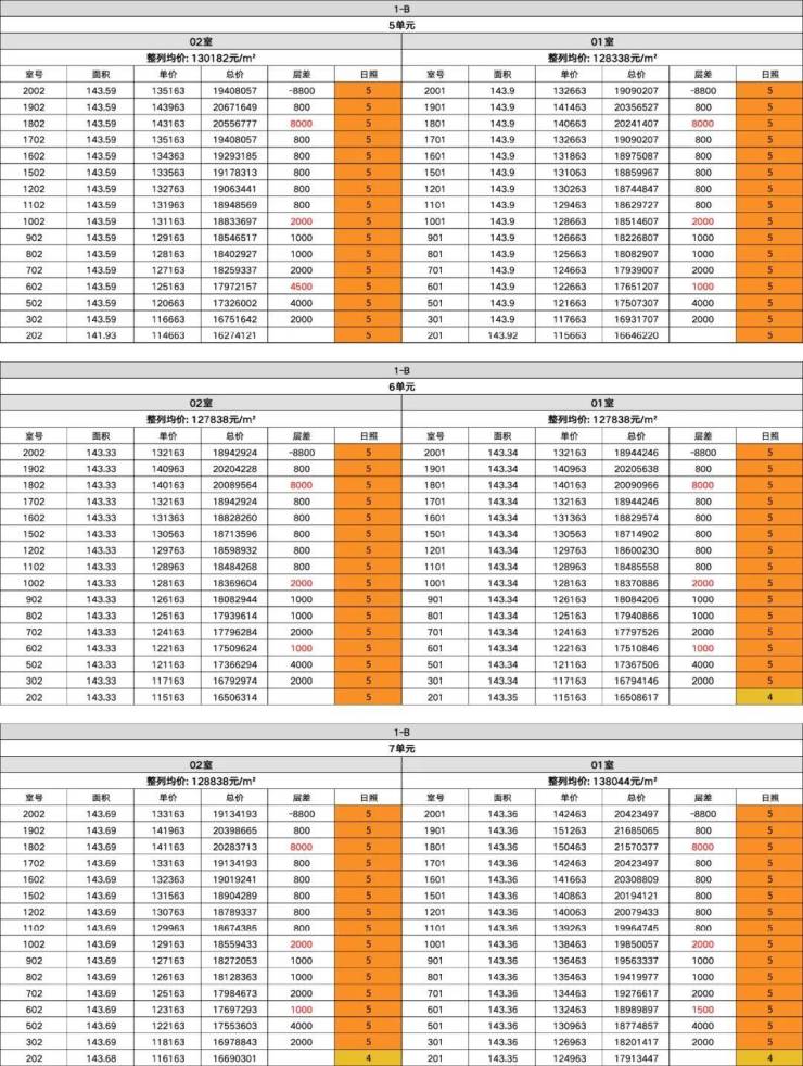 其中6单元东西户定价一致,7单元价格略高于5单元,若追求性价比,建议优先考虑6单元。