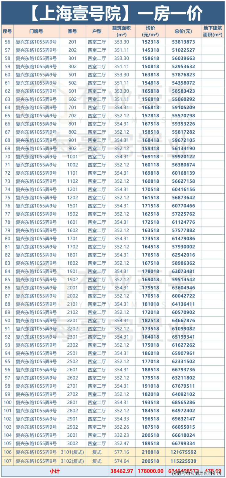 二批次:推出4/5号楼107套,约310-577㎡,均价约17.8万/㎡,开盘已售罄