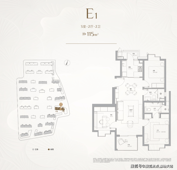建面约115㎡的3房,三开间朝南的设计,户型的整体尺度感更大,餐厅甚至可以放下一张小圆桌。并且3房的实用性可以满足一个家庭的全生命周期需求。