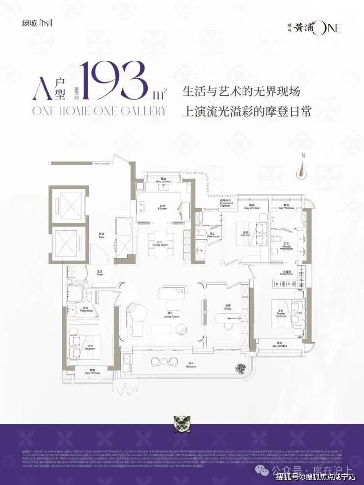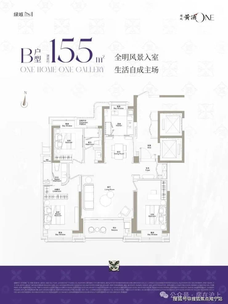 绿城·黄浦ONE售楼处电话:400-8787-740(预约热线)规划了一幢住宅,两个户型依次排开,规整有序,边套是约193㎡4房2厅3卫,中间套是约155㎡3房2厅2卫户型,是纯粹改善大户型社区。