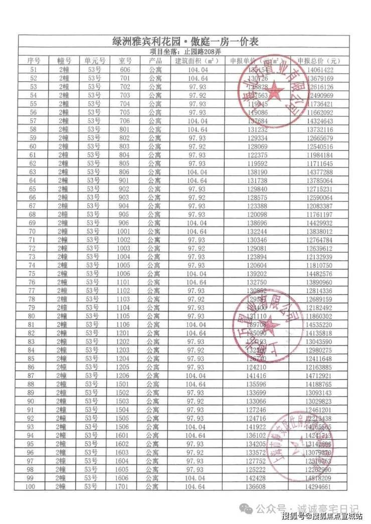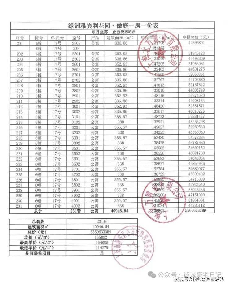 一房一价表发布