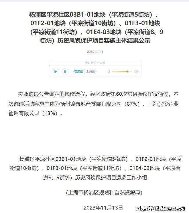 2023年12月,中信泰富(87%)联合杨浦国资(13%)通过协议出让,以总价1143905万元,楼面价63127元/m²竞得4宗打包地块: