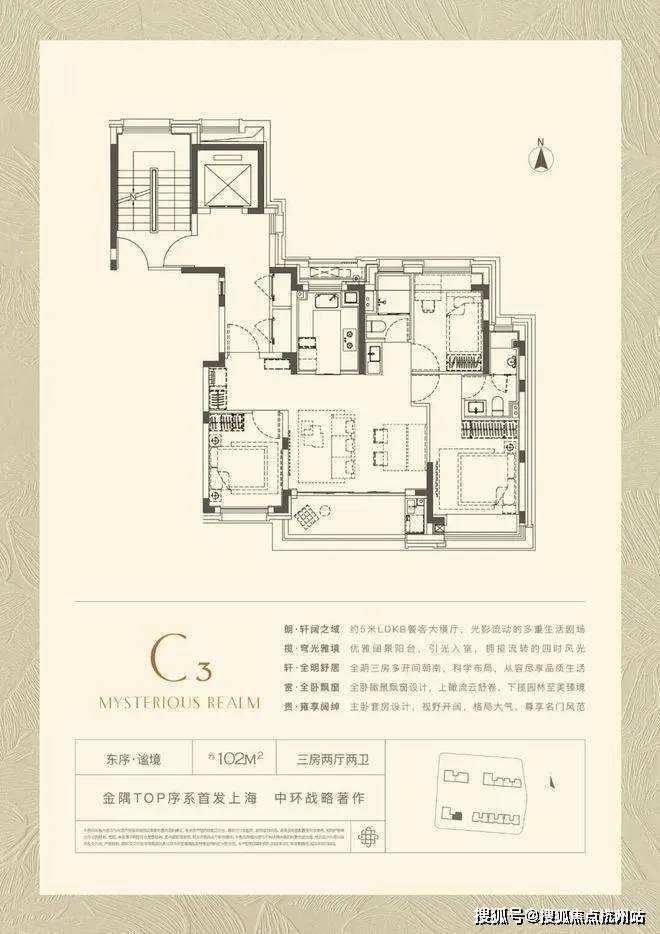 ·建面约102㎡:约5米面宽客厅,飞机户型高利用率