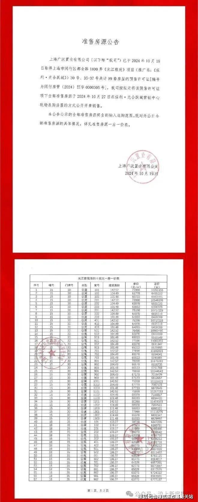 最新一房一价表: