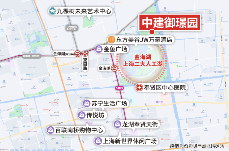周边近百万方商业荟萃,龙湖奉贤天街、龙湖金汇天街均已开业;金海湖地铁上盖的金鱼广场正在火热建设中!