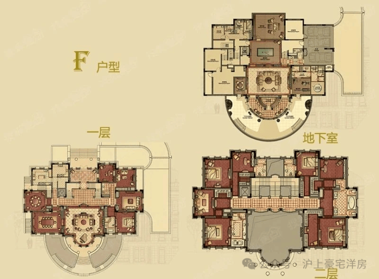 华洲君庭一共仅21套独栋别墅,每栋占地5亩,风格各异,建筑面积在1300~1400平方米之间,超过1000平方米的花园、游泳池、按摩池、室内电梯等都是标配,号称“沪上第一豪宅”。