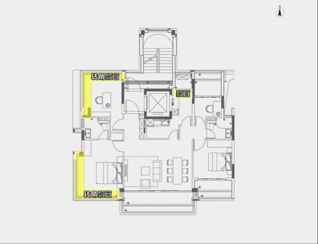 众所周知,现在三阳台新盘有不少,L型飘窗也很常见,而项目此次设计了一版“Pro Max”级的户型——三阳台外还有三个花池,两个卧室拥有L型转角飘窗、厨房飘窗!日常可以实打实利用到的面积是远高于市面上其他四房产品,每一平米都不浪费!