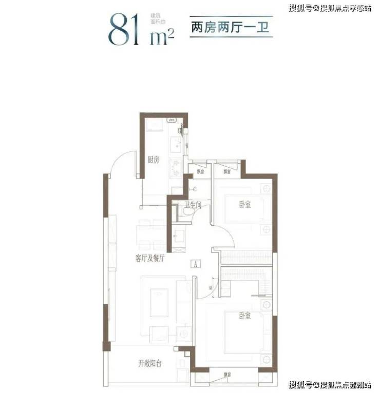建面约81㎡2房2厅1卫▼
