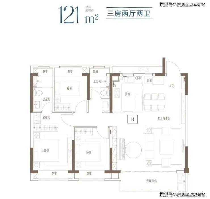 户型特点:3开间朝南,全屋阳光充足;L型厨房转角移门设计,最大化空间视野;四飘窗设计,通透空间享受;动静分区,亲密有度;套房式主卧,容纳私谧生活点滴;