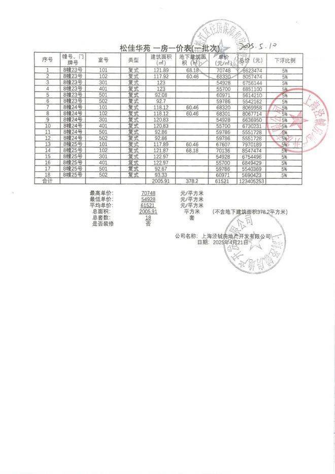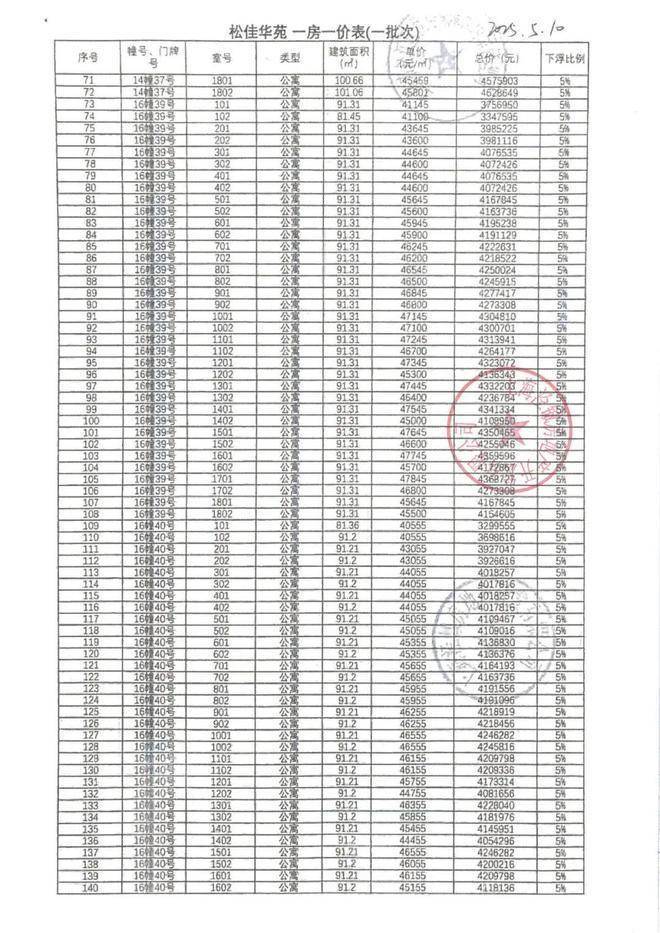 一房一价表