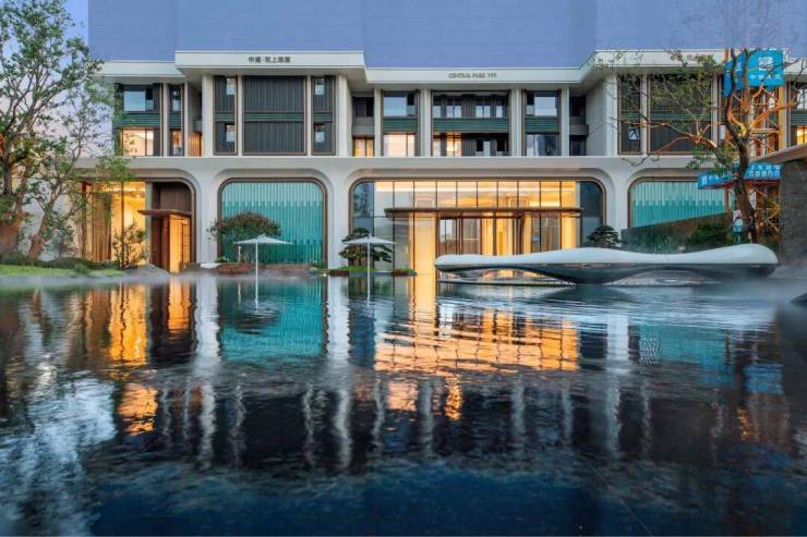 「中建·玖上琅宸」的景观灵感也同样来自豫园。整个中轴线的动线源自豫园“山脉+水脉”的布置手法,景观蜿蜒曲折,遍布下沉庭院、绿植、叠瀑和水景,未来呈现会非常震撼。