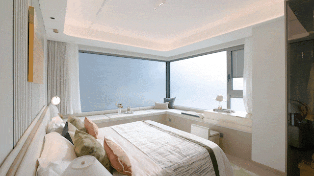 当走进主卧空间,更是惊喜满满。 拥有一个270度的转角飘窗 ,采光非常优异!