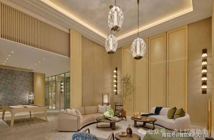 会所内的泳池上方做流畅且立体的吊顶线条,造型现代且富有层次感。这样的设计不仅提升了空间的视觉效果,更营造出一种轻松、悠闲的度假氛围。