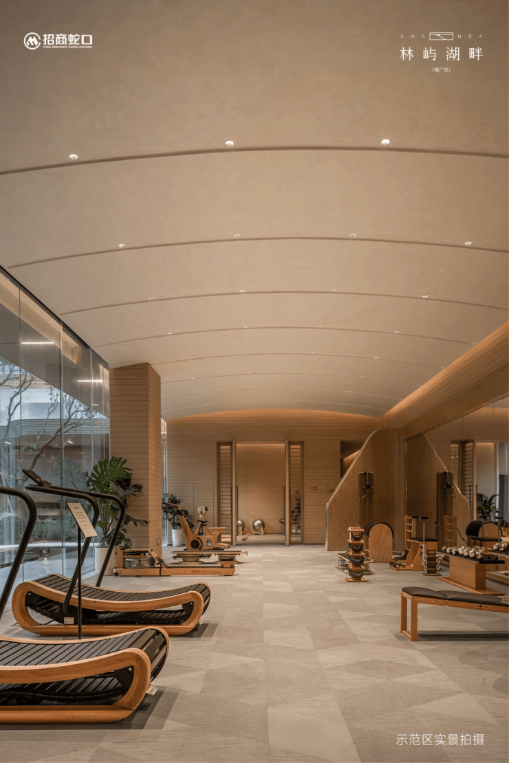 自然贯穿了整个社区公区的设计语言,整体约1200㎡立体会所+约1700㎡主题架空层,配备了私宴厅、瑜伽室、棋牌室等休闲空间。