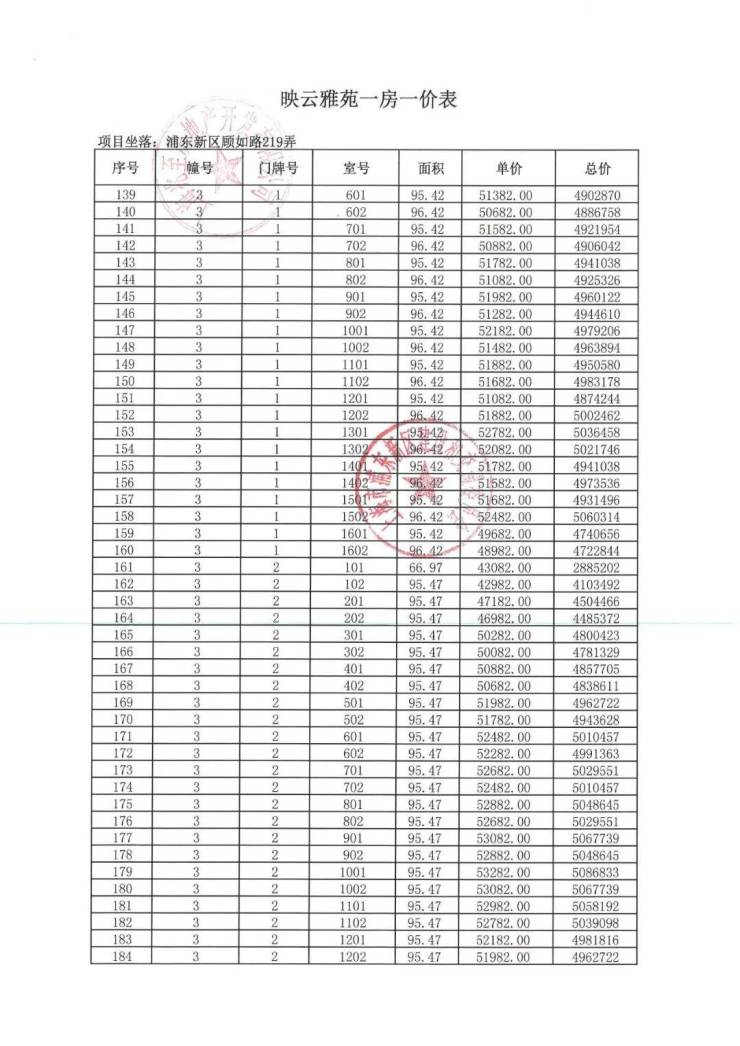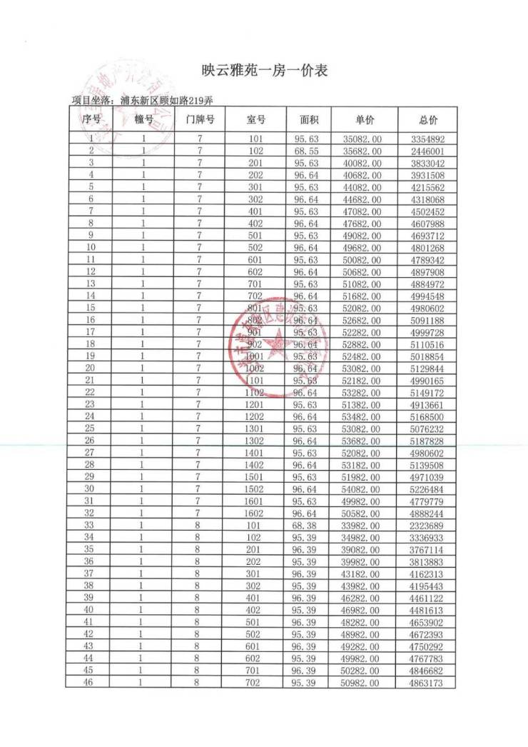 项目一房一价表▼