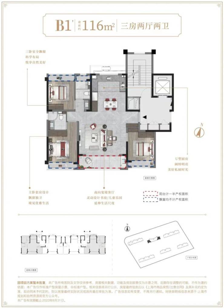 建面约116㎡3房2厅2卫▼