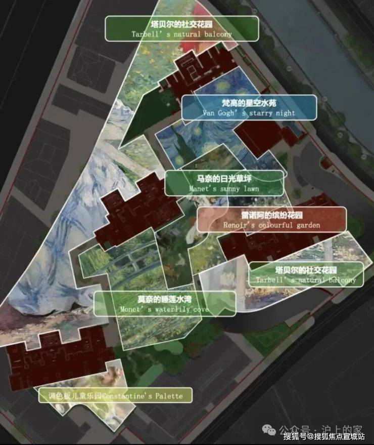 让人眼前一亮的是,景观设计更以印象派艺术史诗为灵感,独创六大主题花园,将传世名作解构为可游可赏的立体生态空间!有梵高的星空水苑、莫奈的睡莲水湾、马奈的日光草坪、塔贝尔的社交花园、雷阿诺的缤纷花园以及调色板儿童乐园……